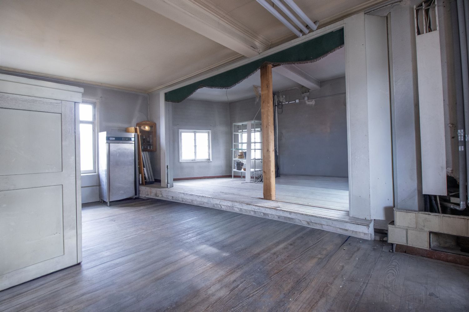 - - OG: Festsaal ca. 170 m² Nutzfläche, umbau in ca. in 6X 1-Zimmer Appartment oder 3–4X 2-Zimmer Wohnungen., leerstand